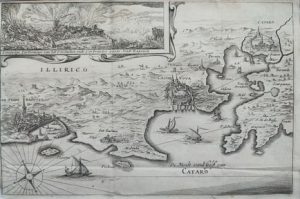 - karta Bokokotarskog zaljeva sa prikazom uništenja Dubrovnika nakon velikog potresa 1667. godine