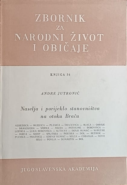 Po Braču sam prikupljao podatke od god. 1930. do 1938. Obišao sam sva bračka naselja nekoliko puta. U mnogima sam bio u više mahova i sakupio mnoštvo različnih podataka o porijeklu stanovništva, o mjesnoj predaji, lokalitetima, crkvištima, crkvicama, naseljima, stvarima materijalne kulture, tipovima kuća, kućica, poljskih skloništa, torova, o zanimanju stanovništva, načinu života, vodama, vododerinama, djelovanju egzogenih sila, obradljivom i neobradljivom tlu, sastavu zemljišta i t.d. Posebnu sam pažnju posvetio istraživanju porijekla stanovništva i razvoju naselja. U ovoj je knjizi govor o porijeklu porodica i na nekoliko sažetih stranica o razvoju naselja.